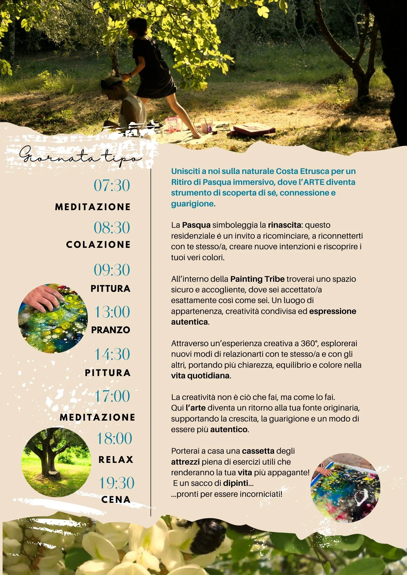 Condivisione della comunità, connessione con Painting Tribe e momenti di silenzio, risate e profondità