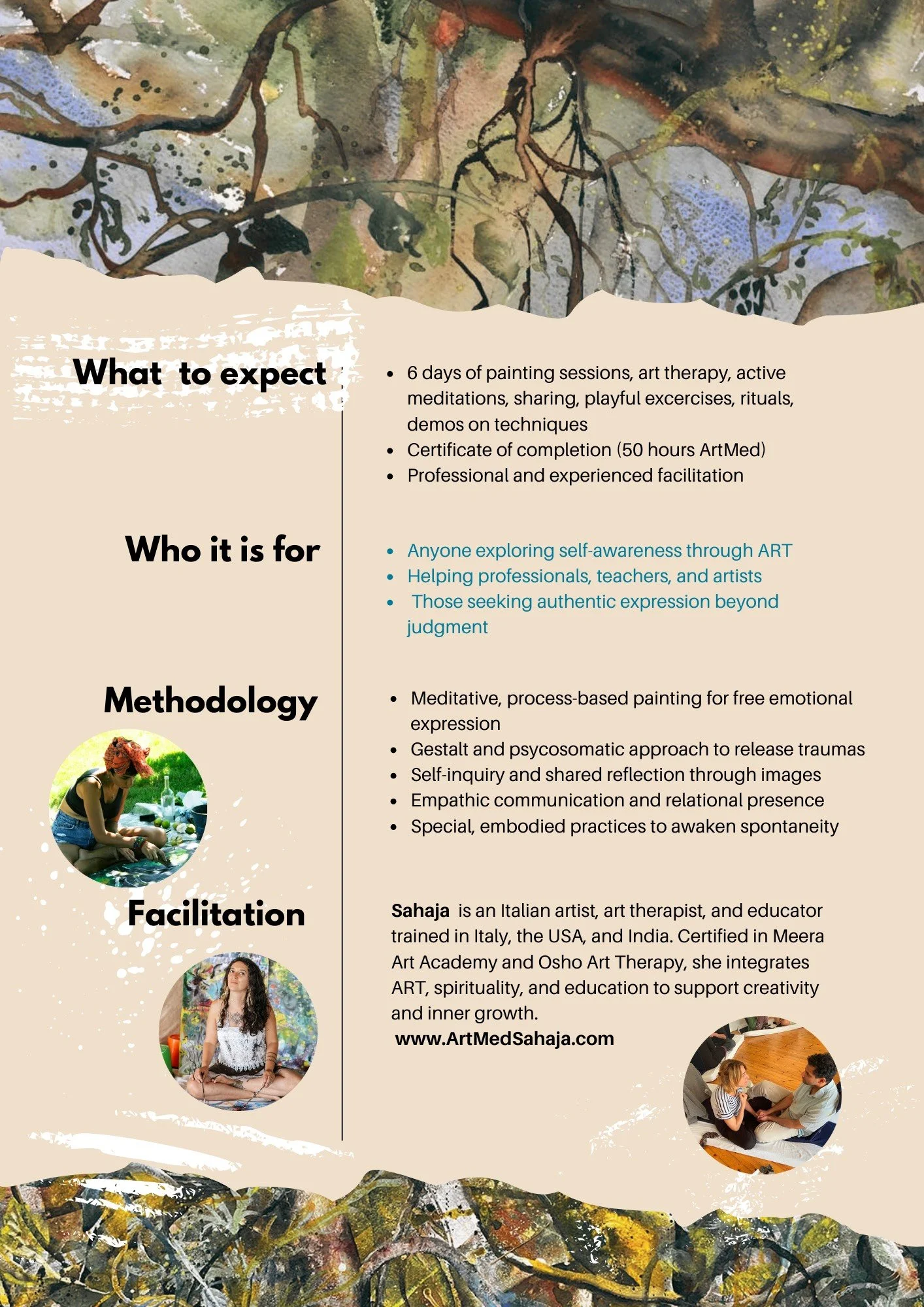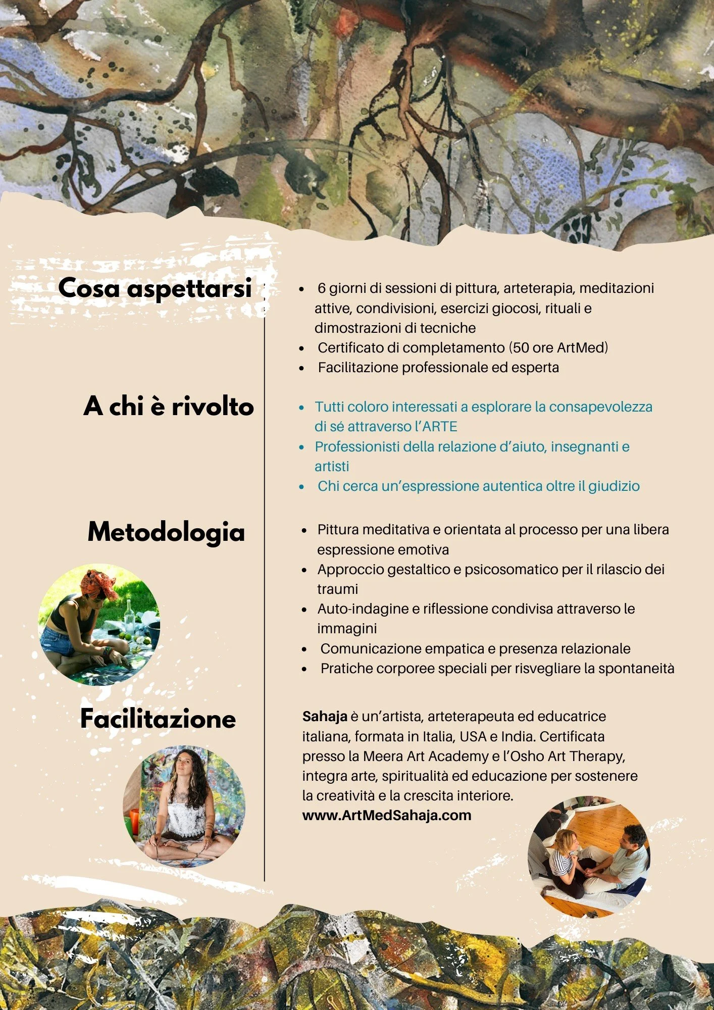 Attraverso la pittura spontanea, il movimento libero, e pratiche creative guidate, risvegliamo la nostra vitalità e ascoltiamo quella voce interiore che sa qual è la nostra direzione.